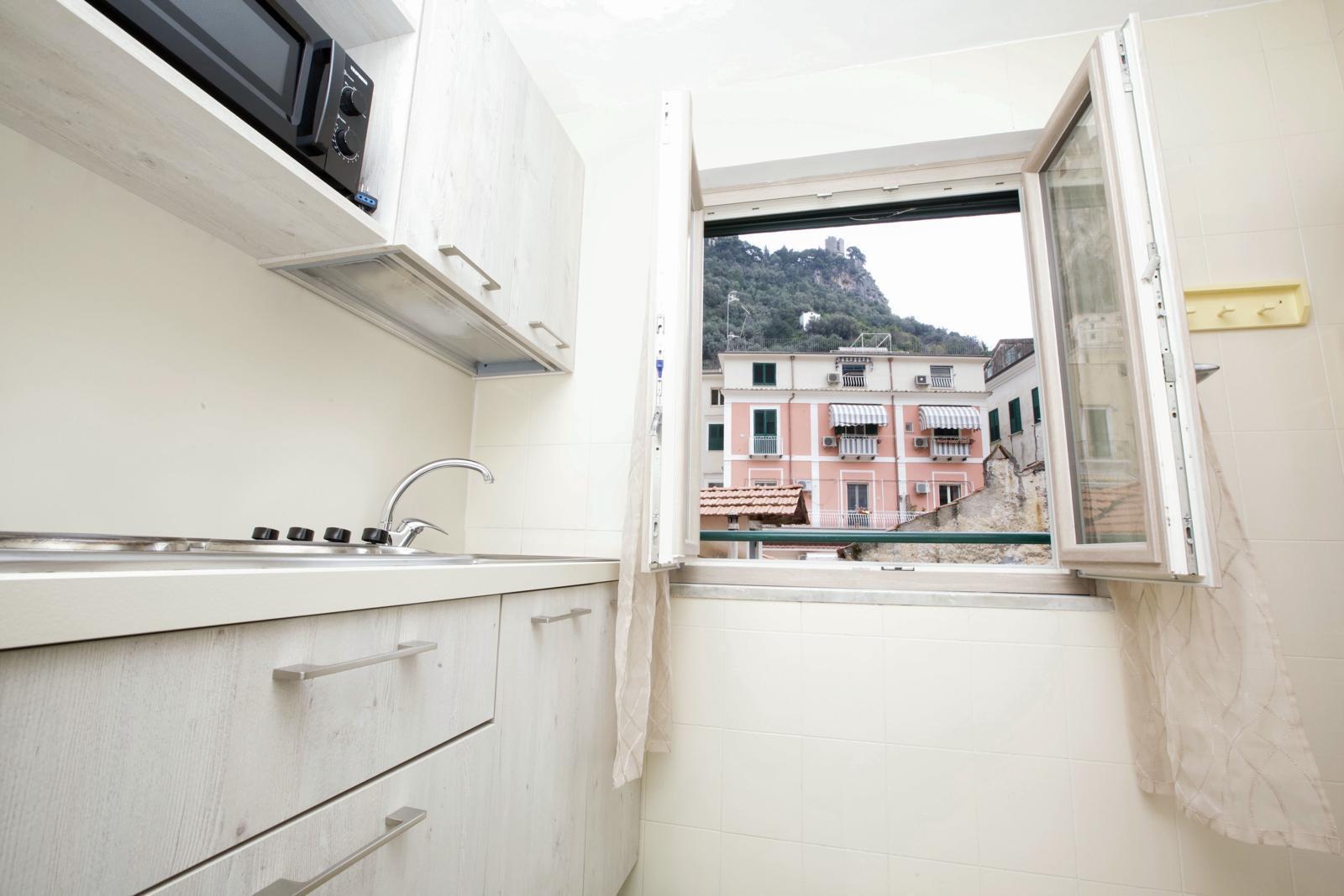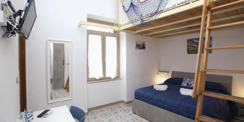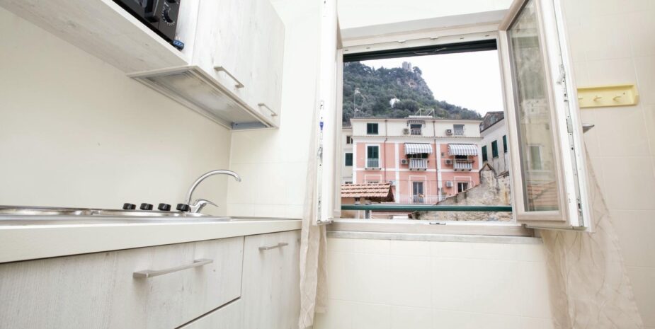 Questo appartamento si trova al secondo piano di un edificio antico. Lo raggiungerete dal livello della strada seguendo un breve passaggio pubblico che attraversa il centro storico di Amalfi e comprende circa 20 gradini. Non c’è ascensore.