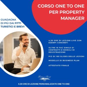 Il costo delle videolezioni del corso di Property Manager è di 449,00 €, da pagare al momento dell’acquisto. Scrivici per maggiori informazioni o chiama al +39 392 2660996!